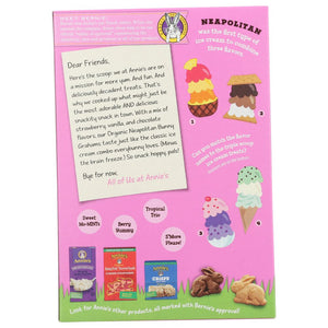 Annie's Bunny Grahams are the adorable snack made for little hands. These bunny-shaped graham crackers in strawberry, vanilla and chocolate flavors are carefully crafted with non-GMO ingredients and no high-fructose corn syrup, so you can feel good about sharing these organic snacks with the whole family. Annie's Neapolitan Grahams are great for quick snacks or an anytime treat. And like all Annie's snacks, they're made with goodness. That means no artificial flavors or synthetic colors.